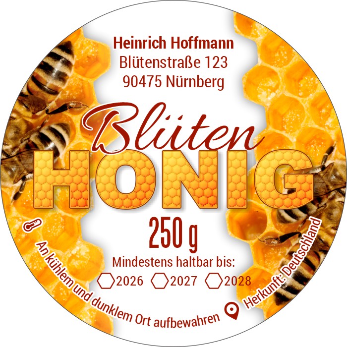 Wählen Sie die Honigsorte oder schreiben Sie Ihre eigene.Geben Sie Ihre Bezeichnung der Honigsorte ein.„Auf dem Etikett wird die ausgewählte Honigsorte angegeben.„Auf dem Etikett wird die ausgewählte Honigsorte angegeben.„Auf dem Etikett wird die ausgewählte Honigsorte angegeben.„Auf dem Etikett wird die ausgewählte Honigsorte angegeben.„Auf dem Etikett wird die ausgewählte Honigsorte angegeben.„Auf dem Etikett wird die ausgewählte Honigsorte angegeben.„Auf dem Etikett wird die ausgewählte Honigsorte angegeben.„Auf dem Etikett wird die ausgewählte Honigsorte angegeben.„Auf dem Etikett wird die ausgewählte Honigsorte angegeben.„Auf dem Etikett wird die ausgewählte Honigsorte angegeben.„Auf dem Etikett wird die ausgewählte Honigsorte angegeben.„Es wird keine Honigsorte angegeben. Es bleibt nur die Bezeichnung HONIG.