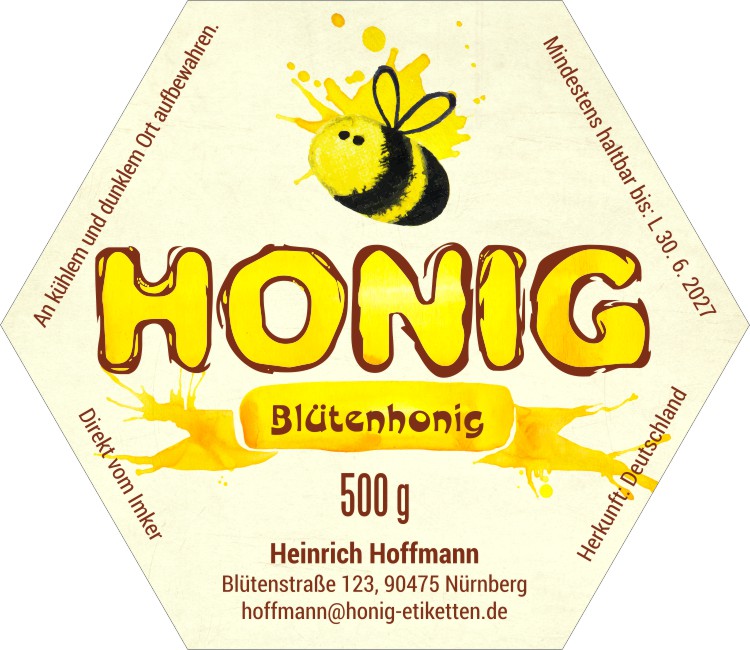 Wählen Sie die Honigsorte oder schreiben Sie Ihre eigene.Geben Sie Ihre Bezeichnung der Honigsorte ein.„Auf dem Etikett wird die ausgewählte Honigsorte angegeben.„Auf dem Etikett wird die ausgewählte Honigsorte angegeben.„Auf dem Etikett wird die ausgewählte Honigsorte angegeben.„Auf dem Etikett wird die ausgewählte Honigsorte angegeben.„Auf dem Etikett wird die ausgewählte Honigsorte angegeben.„Auf dem Etikett wird die ausgewählte Honigsorte angegeben.„Auf dem Etikett wird die ausgewählte Honigsorte angegeben.„Auf dem Etikett wird die ausgewählte Honigsorte angegeben.„Auf dem Etikett wird die ausgewählte Honigsorte angegeben.„Auf dem Etikett wird die ausgewählte Honigsorte angegeben.„Auf dem Etikett wird die ausgewählte Honigsorte angegeben.„Es wird keine Honigsorte angegeben. Es bleibt nur die Bezeichnung HONIG.