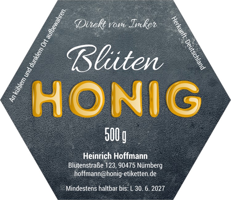 Wählen Sie die Honigsorte oder schreiben Sie Ihre eigene.Geben Sie Ihre Bezeichnung der Honigsorte ein.„Auf dem Etikett wird die ausgewählte Honigsorte angegeben.„Auf dem Etikett wird die ausgewählte Honigsorte angegeben.„Auf dem Etikett wird die ausgewählte Honigsorte angegeben.„Auf dem Etikett wird die ausgewählte Honigsorte angegeben.„Auf dem Etikett wird die ausgewählte Honigsorte angegeben.„Auf dem Etikett wird die ausgewählte Honigsorte angegeben.„Auf dem Etikett wird die ausgewählte Honigsorte angegeben.„Auf dem Etikett wird die ausgewählte Honigsorte angegeben.„Auf dem Etikett wird die ausgewählte Honigsorte angegeben.„Auf dem Etikett wird die ausgewählte Honigsorte angegeben.„Auf dem Etikett wird die ausgewählte Honigsorte angegeben.„Es wird keine Honigsorte angegeben. Es bleibt nur die Bezeichnung HONIG.