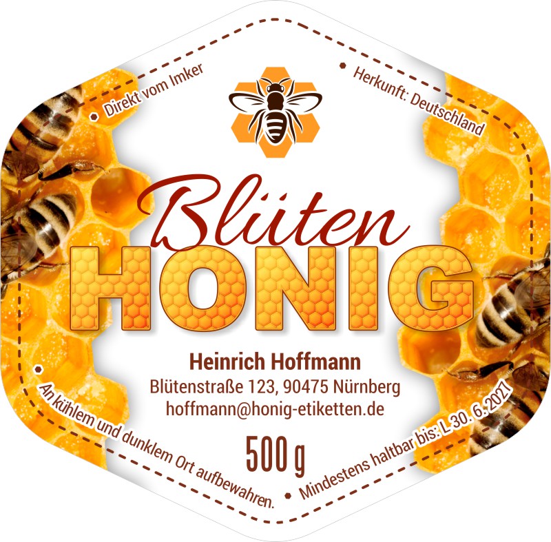 Wählen Sie die Honigsorte oder schreiben Sie Ihre eigene.Geben Sie Ihre Bezeichnung der Honigsorte ein.„Auf dem Etikett wird die ausgewählte Honigsorte angegeben.„Auf dem Etikett wird die ausgewählte Honigsorte angegeben.„Auf dem Etikett wird die ausgewählte Honigsorte angegeben.„Auf dem Etikett wird die ausgewählte Honigsorte angegeben.„Auf dem Etikett wird die ausgewählte Honigsorte angegeben.„Auf dem Etikett wird die ausgewählte Honigsorte angegeben.„Auf dem Etikett wird die ausgewählte Honigsorte angegeben.„Auf dem Etikett wird die ausgewählte Honigsorte angegeben.„Auf dem Etikett wird die ausgewählte Honigsorte angegeben.„Auf dem Etikett wird die ausgewählte Honigsorte angegeben.„Auf dem Etikett wird die ausgewählte Honigsorte angegeben.„Es wird keine Honigsorte angegeben. Es bleibt nur die Bezeichnung HONIG.