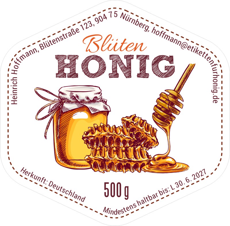 Wählen Sie die Honigsorte oder schreiben Sie Ihre eigene.Geben Sie Ihre Bezeichnung der Honigsorte ein.„Auf dem Etikett wird die ausgewählte Honigsorte angegeben.„Auf dem Etikett wird die ausgewählte Honigsorte angegeben.„Auf dem Etikett wird die ausgewählte Honigsorte angegeben.„Auf dem Etikett wird die ausgewählte Honigsorte angegeben.„Auf dem Etikett wird die ausgewählte Honigsorte angegeben.„Auf dem Etikett wird die ausgewählte Honigsorte angegeben.„Auf dem Etikett wird die ausgewählte Honigsorte angegeben.„Auf dem Etikett wird die ausgewählte Honigsorte angegeben.„Auf dem Etikett wird die ausgewählte Honigsorte angegeben.„Auf dem Etikett wird die ausgewählte Honigsorte angegeben.„Auf dem Etikett wird die ausgewählte Honigsorte angegeben.„Es wird keine Honigsorte angegeben. Es bleibt nur die Bezeichnung HONIG.