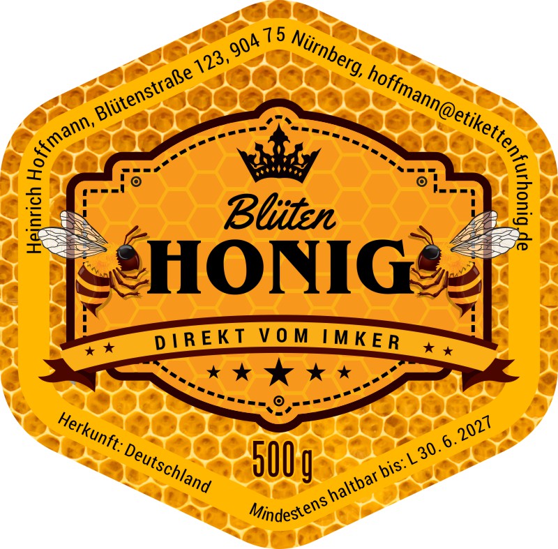 Wählen Sie die Honigsorte oder schreiben Sie Ihre eigene.Geben Sie Ihre Bezeichnung der Honigsorte ein.„Auf dem Etikett wird die ausgewählte Honigsorte angegeben.„Auf dem Etikett wird die ausgewählte Honigsorte angegeben.„Auf dem Etikett wird die ausgewählte Honigsorte angegeben.„Auf dem Etikett wird die ausgewählte Honigsorte angegeben.„Auf dem Etikett wird die ausgewählte Honigsorte angegeben.„Auf dem Etikett wird die ausgewählte Honigsorte angegeben.„Auf dem Etikett wird die ausgewählte Honigsorte angegeben.„Auf dem Etikett wird die ausgewählte Honigsorte angegeben.„Auf dem Etikett wird die ausgewählte Honigsorte angegeben.„Auf dem Etikett wird die ausgewählte Honigsorte angegeben.„Auf dem Etikett wird die ausgewählte Honigsorte angegeben.„Es wird keine Honigsorte angegeben. Es bleibt nur die Bezeichnung HONIG.
