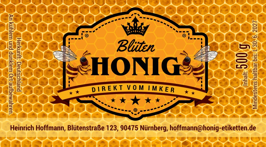 Wählen Sie die Honigsorte oder schreiben Sie Ihre eigene.Geben Sie Ihre Bezeichnung der Honigsorte ein.„Auf dem Etikett wird die ausgewählte Honigsorte angegeben.„Auf dem Etikett wird die ausgewählte Honigsorte angegeben.„Auf dem Etikett wird die ausgewählte Honigsorte angegeben.„Auf dem Etikett wird die ausgewählte Honigsorte angegeben.„Auf dem Etikett wird die ausgewählte Honigsorte angegeben.„Auf dem Etikett wird die ausgewählte Honigsorte angegeben.„Auf dem Etikett wird die ausgewählte Honigsorte angegeben.„Auf dem Etikett wird die ausgewählte Honigsorte angegeben.„Auf dem Etikett wird die ausgewählte Honigsorte angegeben.„Auf dem Etikett wird die ausgewählte Honigsorte angegeben.„Auf dem Etikett wird die ausgewählte Honigsorte angegeben.„Es wird keine Honigsorte angegeben. Es bleibt nur die Bezeichnung HONIG.