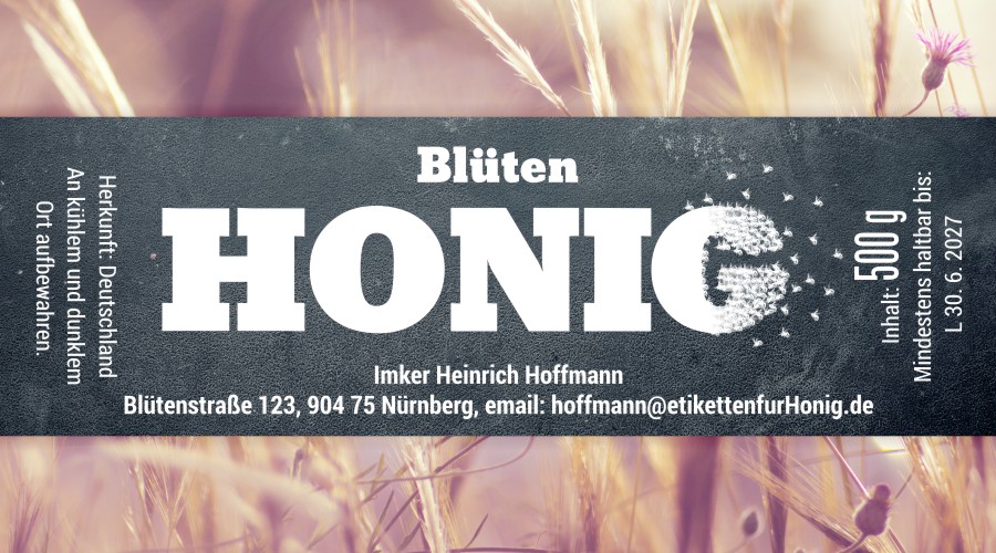 Wählen Sie die Honigsorte oder schreiben Sie Ihre eigene.Geben Sie Ihre Bezeichnung der Honigsorte ein.„Auf dem Etikett wird die ausgewählte Honigsorte angegeben.„Auf dem Etikett wird die ausgewählte Honigsorte angegeben.„Auf dem Etikett wird die ausgewählte Honigsorte angegeben.„Auf dem Etikett wird die ausgewählte Honigsorte angegeben.„Auf dem Etikett wird die ausgewählte Honigsorte angegeben.„Auf dem Etikett wird die ausgewählte Honigsorte angegeben.„Auf dem Etikett wird die ausgewählte Honigsorte angegeben.„Auf dem Etikett wird die ausgewählte Honigsorte angegeben.„Auf dem Etikett wird die ausgewählte Honigsorte angegeben.„Auf dem Etikett wird die ausgewählte Honigsorte angegeben.„Auf dem Etikett wird die ausgewählte Honigsorte angegeben.„Es wird keine Honigsorte angegeben. Es bleibt nur die Bezeichnung HONIG.