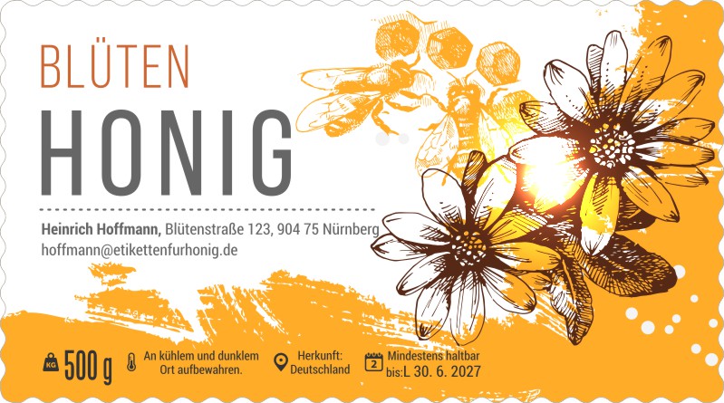 Wählen Sie die Honigsorte oder schreiben Sie Ihre eigene.Geben Sie Ihre Bezeichnung der Honigsorte ein.„Auf dem Etikett wird die ausgewählte Honigsorte angegeben.„Auf dem Etikett wird die ausgewählte Honigsorte angegeben.„Auf dem Etikett wird die ausgewählte Honigsorte angegeben.„Auf dem Etikett wird die ausgewählte Honigsorte angegeben.„Auf dem Etikett wird die ausgewählte Honigsorte angegeben.„Auf dem Etikett wird die ausgewählte Honigsorte angegeben.„Auf dem Etikett wird die ausgewählte Honigsorte angegeben.„Auf dem Etikett wird die ausgewählte Honigsorte angegeben.„Auf dem Etikett wird die ausgewählte Honigsorte angegeben.„Auf dem Etikett wird die ausgewählte Honigsorte angegeben.„Auf dem Etikett wird die ausgewählte Honigsorte angegeben.„Es wird keine Honigsorte angegeben. Es bleibt nur die Bezeichnung HONIG.