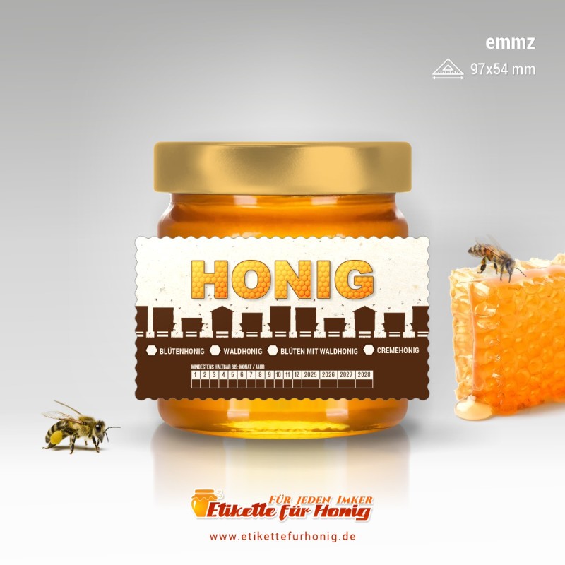 Startseite > Universaletikette für Honig verschiedener Formate und Abmessungen > Universaletikette  für Honig 97x54mm mit gewelltem Zierrand