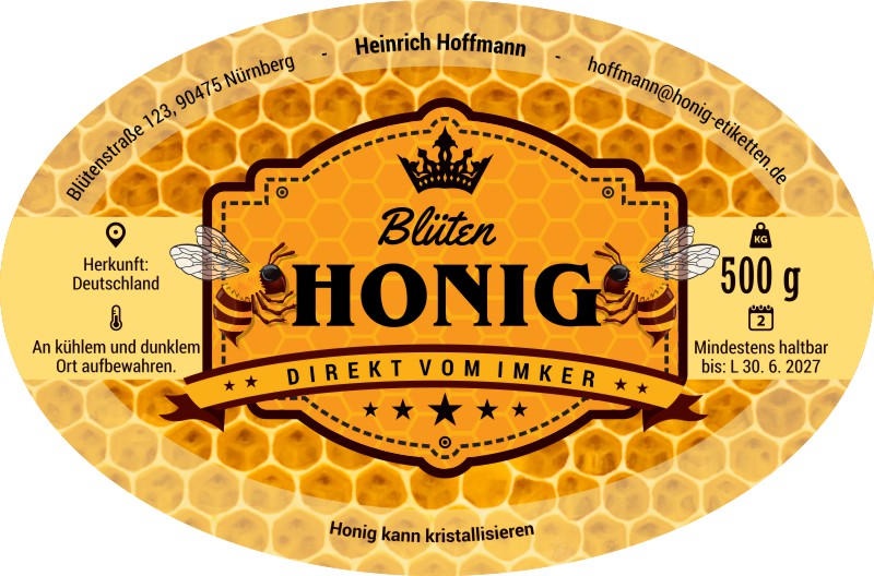 Wählen Sie die Honigsorte oder schreiben Sie Ihre eigene.Geben Sie Ihre Bezeichnung der Honigsorte ein.„Auf dem Etikett wird die ausgewählte Honigsorte angegeben.„Auf dem Etikett wird die ausgewählte Honigsorte angegeben.„Auf dem Etikett wird die ausgewählte Honigsorte angegeben.„Auf dem Etikett wird die ausgewählte Honigsorte angegeben.„Auf dem Etikett wird die ausgewählte Honigsorte angegeben.„Auf dem Etikett wird die ausgewählte Honigsorte angegeben.„Auf dem Etikett wird die ausgewählte Honigsorte angegeben.„Auf dem Etikett wird die ausgewählte Honigsorte angegeben.„Auf dem Etikett wird die ausgewählte Honigsorte angegeben.„Auf dem Etikett wird die ausgewählte Honigsorte angegeben.„Auf dem Etikett wird die ausgewählte Honigsorte angegeben.„Es wird keine Honigsorte angegeben. Es bleibt nur die Bezeichnung HONIG.