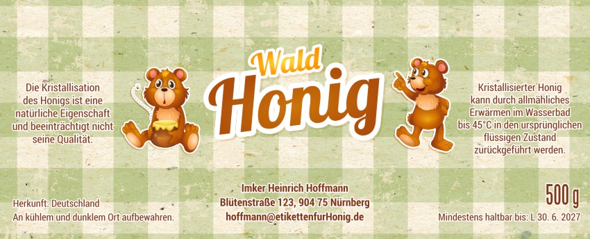 Wählen Sie die Honigsorte oder schreiben Sie Ihre eigene.Geben Sie Ihre Bezeichnung der Honigsorte ein.„Auf dem Etikett wird die ausgewählte Honigsorte angegeben.„Auf dem Etikett wird die ausgewählte Honigsorte angegeben.„Auf dem Etikett wird die ausgewählte Honigsorte angegeben.„Auf dem Etikett wird die ausgewählte Honigsorte angegeben.„Auf dem Etikett wird die ausgewählte Honigsorte angegeben.„Auf dem Etikett wird die ausgewählte Honigsorte angegeben.„Auf dem Etikett wird die ausgewählte Honigsorte angegeben.„Auf dem Etikett wird die ausgewählte Honigsorte angegeben.„Auf dem Etikett wird die ausgewählte Honigsorte angegeben.„Auf dem Etikett wird die ausgewählte Honigsorte angegeben.„Auf dem Etikett wird die ausgewählte Honigsorte angegeben.„Es wird keine Honigsorte angegeben. Es bleibt nur die Bezeichnung HONIG.