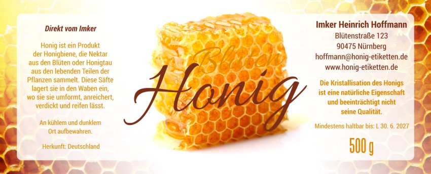 Wählen Sie die Honigsorte oder schreiben Sie Ihre eigene.Geben Sie Ihre Bezeichnung der Honigsorte ein.„Auf dem Etikett wird die ausgewählte Honigsorte angegeben.„Auf dem Etikett wird die ausgewählte Honigsorte angegeben.„Auf dem Etikett wird die ausgewählte Honigsorte angegeben.„Auf dem Etikett wird die ausgewählte Honigsorte angegeben.„Auf dem Etikett wird die ausgewählte Honigsorte angegeben.„Auf dem Etikett wird die ausgewählte Honigsorte angegeben.„Auf dem Etikett wird die ausgewählte Honigsorte angegeben.„Auf dem Etikett wird die ausgewählte Honigsorte angegeben.„Auf dem Etikett wird die ausgewählte Honigsorte angegeben.„Auf dem Etikett wird die ausgewählte Honigsorte angegeben.„Auf dem Etikett wird die ausgewählte Honigsorte angegeben.„Es wird keine Honigsorte angegeben. Es bleibt nur die Bezeichnung HONIG.