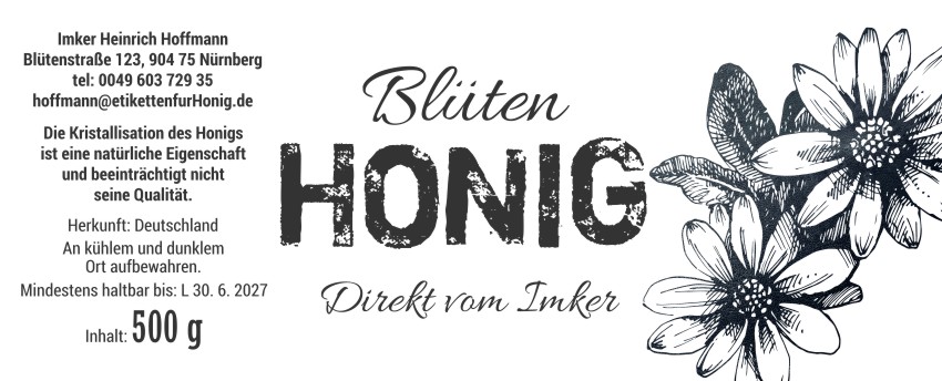 Wählen Sie die Honigsorte oder schreiben Sie Ihre eigene.Geben Sie Ihre Bezeichnung der Honigsorte ein.„Auf dem Etikett wird die ausgewählte Honigsorte angegeben.„Auf dem Etikett wird die ausgewählte Honigsorte angegeben.„Auf dem Etikett wird die ausgewählte Honigsorte angegeben.„Auf dem Etikett wird die ausgewählte Honigsorte angegeben.„Auf dem Etikett wird die ausgewählte Honigsorte angegeben.„Auf dem Etikett wird die ausgewählte Honigsorte angegeben.„Auf dem Etikett wird die ausgewählte Honigsorte angegeben.„Auf dem Etikett wird die ausgewählte Honigsorte angegeben.„Auf dem Etikett wird die ausgewählte Honigsorte angegeben.„Auf dem Etikett wird die ausgewählte Honigsorte angegeben.„Auf dem Etikett wird die ausgewählte Honigsorte angegeben.„Es wird keine Honigsorte angegeben. Es bleibt nur die Bezeichnung HONIG.