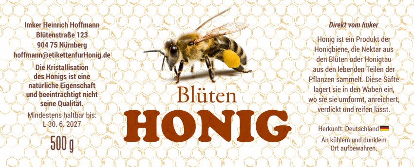 Wählen Sie die Honigsorte oder schreiben Sie Ihre eigene.Geben Sie Ihre Bezeichnung der Honigsorte ein.„Auf dem Etikett wird die ausgewählte Honigsorte angegeben.„Auf dem Etikett wird die ausgewählte Honigsorte angegeben.„Auf dem Etikett wird die ausgewählte Honigsorte angegeben.„Auf dem Etikett wird die ausgewählte Honigsorte angegeben.„Auf dem Etikett wird die ausgewählte Honigsorte angegeben.„Auf dem Etikett wird die ausgewählte Honigsorte angegeben.„Auf dem Etikett wird die ausgewählte Honigsorte angegeben.„Auf dem Etikett wird die ausgewählte Honigsorte angegeben.„Auf dem Etikett wird die ausgewählte Honigsorte angegeben.„Auf dem Etikett wird die ausgewählte Honigsorte angegeben.„Auf dem Etikett wird die ausgewählte Honigsorte angegeben.„Es wird keine Honigsorte angegeben. Es bleibt nur die Bezeichnung HONIG.