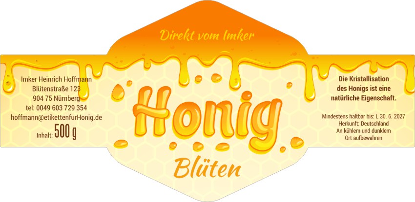 Wählen Sie die Honigsorte oder schreiben Sie Ihre eigene.Geben Sie Ihre Bezeichnung der Honigsorte ein.„Auf dem Etikett wird die ausgewählte Honigsorte angegeben.„Auf dem Etikett wird die ausgewählte Honigsorte angegeben.„Auf dem Etikett wird die ausgewählte Honigsorte angegeben.„Auf dem Etikett wird die ausgewählte Honigsorte angegeben.„Auf dem Etikett wird die ausgewählte Honigsorte angegeben.„Auf dem Etikett wird die ausgewählte Honigsorte angegeben.„Auf dem Etikett wird die ausgewählte Honigsorte angegeben.„Auf dem Etikett wird die ausgewählte Honigsorte angegeben.„Auf dem Etikett wird die ausgewählte Honigsorte angegeben.„Auf dem Etikett wird die ausgewählte Honigsorte angegeben.„Auf dem Etikett wird die ausgewählte Honigsorte angegeben.„Es wird keine Honigsorte angegeben. Es bleibt nur die Bezeichnung HONIG.