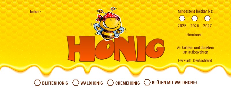 Dieses Etikett ist für die universelle Verwendung bestimmt und wird so geliefert, wie Sie es sehen. Bei diesen Universaletiketten sind keinerlei Änderungen oder Ergänzungen der Angaben möglich. Auf dem Etikett können Sie anschließend selbst das Gewicht, das Jahr, die Art des Honigs oder die Bezeichnung des Imkers in den vorgedruckten Feldern, z.B. Mit einem Marker, ankreuzen oder hinzufügen.