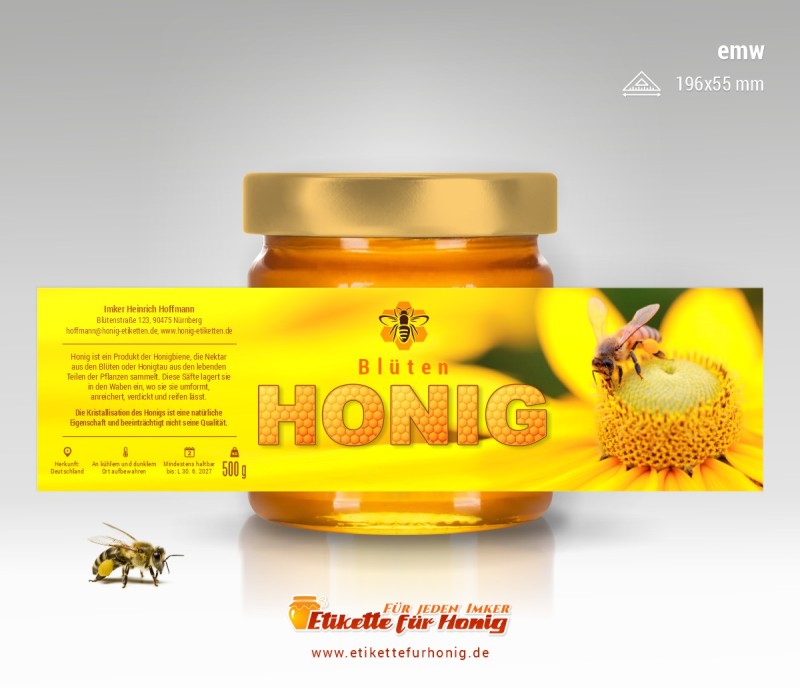 Wählen Sie die Honigsorte oder schreiben Sie Ihre eigene.Geben Sie Ihre Bezeichnung der Honigsorte ein.„Auf dem Etikett wird die ausgewählte Honigsorte angegeben.„Auf dem Etikett wird die ausgewählte Honigsorte angegeben.„Auf dem Etikett wird die ausgewählte Honigsorte angegeben.„Auf dem Etikett wird die ausgewählte Honigsorte angegeben.„Auf dem Etikett wird die ausgewählte Honigsorte angegeben.„Auf dem Etikett wird die ausgewählte Honigsorte angegeben.„Auf dem Etikett wird die ausgewählte Honigsorte angegeben.„Auf dem Etikett wird die ausgewählte Honigsorte angegeben.„Auf dem Etikett wird die ausgewählte Honigsorte angegeben.„Auf dem Etikett wird die ausgewählte Honigsorte angegeben.„Auf dem Etikett wird die ausgewählte Honigsorte angegeben.„Es wird keine Honigsorte angegeben. Es bleibt nur die Bezeichnung HONIG.