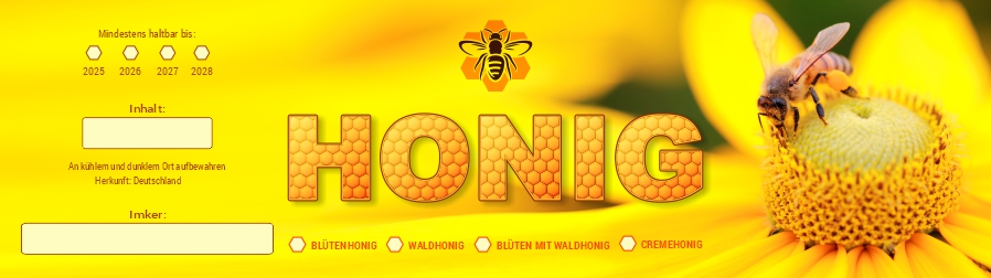 Dieses Etikett ist für die universelle Verwendung bestimmt und wird so geliefert, wie Sie es sehen. Bei diesen Universaletiketten sind keinerlei Änderungen oder Ergänzungen der Angaben möglich. Auf dem Etikett können Sie anschließend selbst das Gewicht, das Jahr, die Art des Honigs oder die Bezeichnung des Imkers in den vorgedruckten Feldern, z.B. Mit einem Marker, ankreuzen oder hinzufügen.