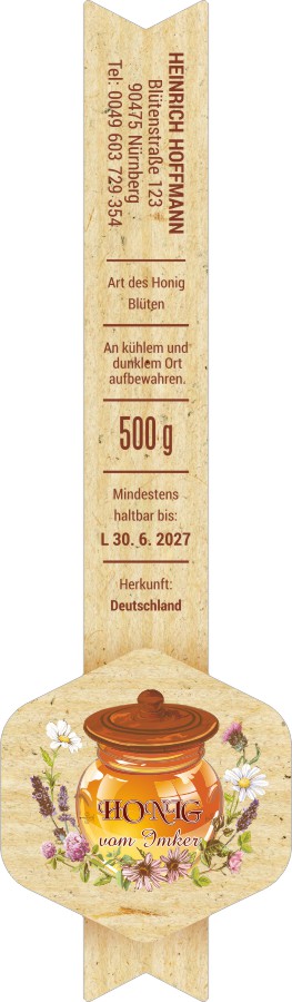 Wählen Sie die Honigsorte oder schreiben Sie Ihre eigene.Geben Sie Ihre Bezeichnung der Honigsorte ein.„Auf dem Etikett wird die ausgewählte Honigsorte angegeben.„Auf dem Etikett wird die ausgewählte Honigsorte angegeben.„Auf dem Etikett wird die ausgewählte Honigsorte angegeben.„Auf dem Etikett wird die ausgewählte Honigsorte angegeben.„Auf dem Etikett wird die ausgewählte Honigsorte angegeben.„Auf dem Etikett wird die ausgewählte Honigsorte angegeben.„Auf dem Etikett wird die ausgewählte Honigsorte angegeben.„Auf dem Etikett wird die ausgewählte Honigsorte angegeben.„Auf dem Etikett wird die ausgewählte Honigsorte angegeben.„Auf dem Etikett wird die ausgewählte Honigsorte angegeben.„Auf dem Etikett wird die ausgewählte Honigsorte angegeben.„Es wird keine Honigsorte angegeben. Es bleibt nur die Bezeichnung HONIG.