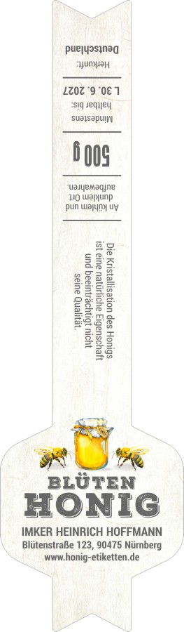 Wählen Sie die Honigsorte oder schreiben Sie Ihre eigene.Geben Sie Ihre Bezeichnung der Honigsorte ein.„Auf dem Etikett wird die ausgewählte Honigsorte angegeben.„Auf dem Etikett wird die ausgewählte Honigsorte angegeben.„Auf dem Etikett wird die ausgewählte Honigsorte angegeben.„Auf dem Etikett wird die ausgewählte Honigsorte angegeben.„Auf dem Etikett wird die ausgewählte Honigsorte angegeben.„Auf dem Etikett wird die ausgewählte Honigsorte angegeben.„Auf dem Etikett wird die ausgewählte Honigsorte angegeben.„Auf dem Etikett wird die ausgewählte Honigsorte angegeben.„Auf dem Etikett wird die ausgewählte Honigsorte angegeben.„Auf dem Etikett wird die ausgewählte Honigsorte angegeben.„Auf dem Etikett wird die ausgewählte Honigsorte angegeben.„Es wird keine Honigsorte angegeben. Es bleibt nur die Bezeichnung HONIG.