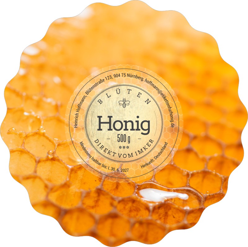 Wählen Sie die Honigsorte oder schreiben Sie Ihre eigene.Geben Sie Ihre Bezeichnung der Honigsorte ein.„Auf dem Etikett wird die ausgewählte Honigsorte angegeben.„Auf dem Etikett wird die ausgewählte Honigsorte angegeben.„Auf dem Etikett wird die ausgewählte Honigsorte angegeben.„Auf dem Etikett wird die ausgewählte Honigsorte angegeben.„Auf dem Etikett wird die ausgewählte Honigsorte angegeben.„Auf dem Etikett wird die ausgewählte Honigsorte angegeben.„Auf dem Etikett wird die ausgewählte Honigsorte angegeben.„Auf dem Etikett wird die ausgewählte Honigsorte angegeben.„Auf dem Etikett wird die ausgewählte Honigsorte angegeben.„Auf dem Etikett wird die ausgewählte Honigsorte angegeben.„Auf dem Etikett wird die ausgewählte Honigsorte angegeben.„Es wird keine Honigsorte angegeben. Es bleibt nur die Bezeichnung HONIG.