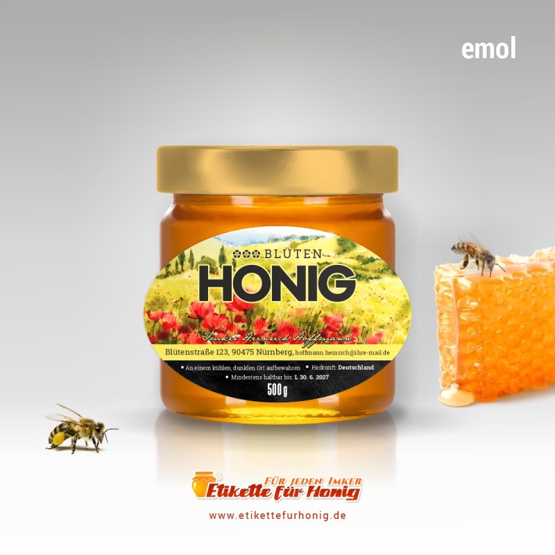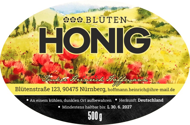 Wählen Sie die Honigsorte oder schreiben Sie Ihre eigene.Geben Sie Ihre Bezeichnung der Honigsorte ein.„Auf dem Etikett wird die ausgewählte Honigsorte angegeben.„Auf dem Etikett wird die ausgewählte Honigsorte angegeben.„Auf dem Etikett wird die ausgewählte Honigsorte angegeben.„Auf dem Etikett wird die ausgewählte Honigsorte angegeben.„Auf dem Etikett wird die ausgewählte Honigsorte angegeben.„Auf dem Etikett wird die ausgewählte Honigsorte angegeben.„Auf dem Etikett wird die ausgewählte Honigsorte angegeben.„Auf dem Etikett wird die ausgewählte Honigsorte angegeben.„Auf dem Etikett wird die ausgewählte Honigsorte angegeben.„Auf dem Etikett wird die ausgewählte Honigsorte angegeben.„Auf dem Etikett wird die ausgewählte Honigsorte angegeben.„Es wird keine Honigsorte angegeben. Es bleibt nur die Bezeichnung HONIG.