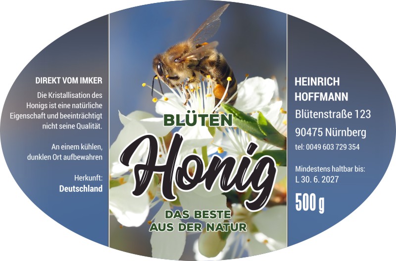 Wählen Sie die Honigsorte oder schreiben Sie Ihre eigene.Geben Sie Ihre Bezeichnung der Honigsorte ein.„Auf dem Etikett wird die ausgewählte Honigsorte angegeben.„Auf dem Etikett wird die ausgewählte Honigsorte angegeben.„Auf dem Etikett wird die ausgewählte Honigsorte angegeben.„Auf dem Etikett wird die ausgewählte Honigsorte angegeben.„Auf dem Etikett wird die ausgewählte Honigsorte angegeben.„Auf dem Etikett wird die ausgewählte Honigsorte angegeben.„Auf dem Etikett wird die ausgewählte Honigsorte angegeben.„Auf dem Etikett wird die ausgewählte Honigsorte angegeben.„Auf dem Etikett wird die ausgewählte Honigsorte angegeben.„Auf dem Etikett wird die ausgewählte Honigsorte angegeben.„Auf dem Etikett wird die ausgewählte Honigsorte angegeben.„Es wird keine Honigsorte angegeben. Es bleibt nur die Bezeichnung HONIG.