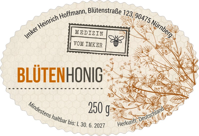 Wählen Sie die Honigsorte oder schreiben Sie Ihre eigene.Geben Sie Ihre Bezeichnung der Honigsorte ein.„Auf dem Etikett wird die ausgewählte Honigsorte angegeben.„Auf dem Etikett wird die ausgewählte Honigsorte angegeben.„Auf dem Etikett wird die ausgewählte Honigsorte angegeben.„Auf dem Etikett wird die ausgewählte Honigsorte angegeben.„Auf dem Etikett wird die ausgewählte Honigsorte angegeben.„Auf dem Etikett wird die ausgewählte Honigsorte angegeben.„Auf dem Etikett wird die ausgewählte Honigsorte angegeben.„Auf dem Etikett wird die ausgewählte Honigsorte angegeben.„Auf dem Etikett wird die ausgewählte Honigsorte angegeben.„Auf dem Etikett wird die ausgewählte Honigsorte angegeben.„Auf dem Etikett wird die ausgewählte Honigsorte angegeben.„Es wird keine Honigsorte angegeben. Es bleibt nur die Bezeichnung HONIG.