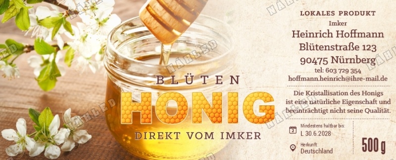 Wählen Sie die Honigsorte oder schreiben Sie Ihre eigene.Geben Sie Ihre Bezeichnung der Honigsorte ein.„Auf dem Etikett wird die ausgewählte Honigsorte angegeben.„Auf dem Etikett wird die ausgewählte Honigsorte angegeben.„Auf dem Etikett wird die ausgewählte Honigsorte angegeben.„Auf dem Etikett wird die ausgewählte Honigsorte angegeben.„Auf dem Etikett wird die ausgewählte Honigsorte angegeben.„Auf dem Etikett wird die ausgewählte Honigsorte angegeben.„Auf dem Etikett wird die ausgewählte Honigsorte angegeben.„Auf dem Etikett wird die ausgewählte Honigsorte angegeben.„Auf dem Etikett wird die ausgewählte Honigsorte angegeben.„Auf dem Etikett wird die ausgewählte Honigsorte angegeben.„Auf dem Etikett wird die ausgewählte Honigsorte angegeben.„Es wird keine Honigsorte angegeben. Es bleibt nur die Bezeichnung HONIG.