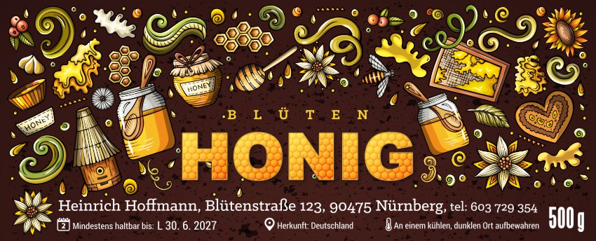 Wählen Sie die Honigsorte oder schreiben Sie Ihre eigene.Geben Sie Ihre Bezeichnung der Honigsorte ein.„Auf dem Etikett wird die ausgewählte Honigsorte angegeben.„Auf dem Etikett wird die ausgewählte Honigsorte angegeben.„Auf dem Etikett wird die ausgewählte Honigsorte angegeben.„Auf dem Etikett wird die ausgewählte Honigsorte angegeben.„Auf dem Etikett wird die ausgewählte Honigsorte angegeben.„Auf dem Etikett wird die ausgewählte Honigsorte angegeben.„Auf dem Etikett wird die ausgewählte Honigsorte angegeben.„Auf dem Etikett wird die ausgewählte Honigsorte angegeben.„Auf dem Etikett wird die ausgewählte Honigsorte angegeben.„Auf dem Etikett wird die ausgewählte Honigsorte angegeben.„Auf dem Etikett wird die ausgewählte Honigsorte angegeben.„Es wird keine Honigsorte angegeben. Es bleibt nur die Bezeichnung HONIG.