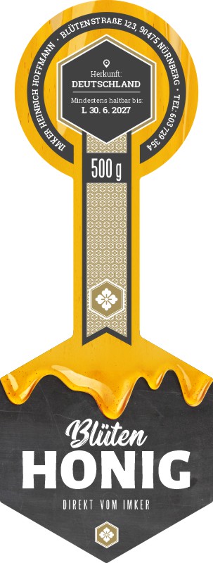 Wählen Sie die Honigsorte oder schreiben Sie Ihre eigene.Geben Sie Ihre Bezeichnung der Honigsorte ein.„Auf dem Etikett wird die ausgewählte Honigsorte angegeben.„Auf dem Etikett wird die ausgewählte Honigsorte angegeben.„Auf dem Etikett wird die ausgewählte Honigsorte angegeben.„Auf dem Etikett wird die ausgewählte Honigsorte angegeben.„Auf dem Etikett wird die ausgewählte Honigsorte angegeben.„Auf dem Etikett wird die ausgewählte Honigsorte angegeben.„Auf dem Etikett wird die ausgewählte Honigsorte angegeben.„Auf dem Etikett wird die ausgewählte Honigsorte angegeben.„Auf dem Etikett wird die ausgewählte Honigsorte angegeben.„Auf dem Etikett wird die ausgewählte Honigsorte angegeben.„Auf dem Etikett wird die ausgewählte Honigsorte angegeben.„Es wird keine Honigsorte angegeben. Es bleibt nur die Bezeichnung HONIG.