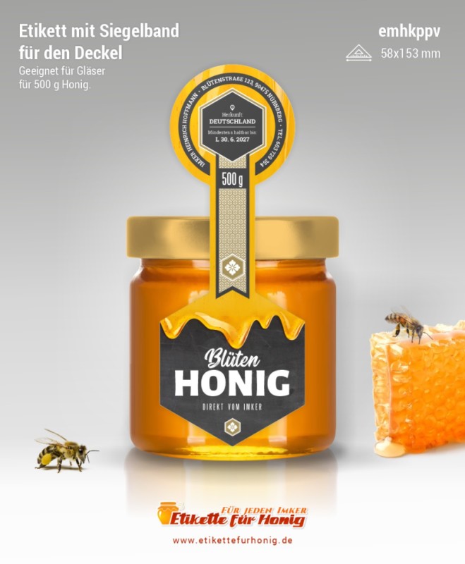 Startseite > Honigetiketten 58x153mm und 45x124mm, mit Siegelband > Honigetiketten 58x153mm, mit Siegelband (500g)