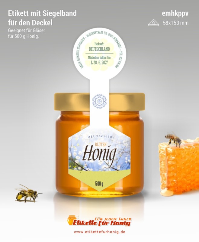 Startseite > Honigetiketten 58x153mm und 45x124mm, mit Siegelband > Honigetiketten 58x153mm, mit Siegelband (500g)