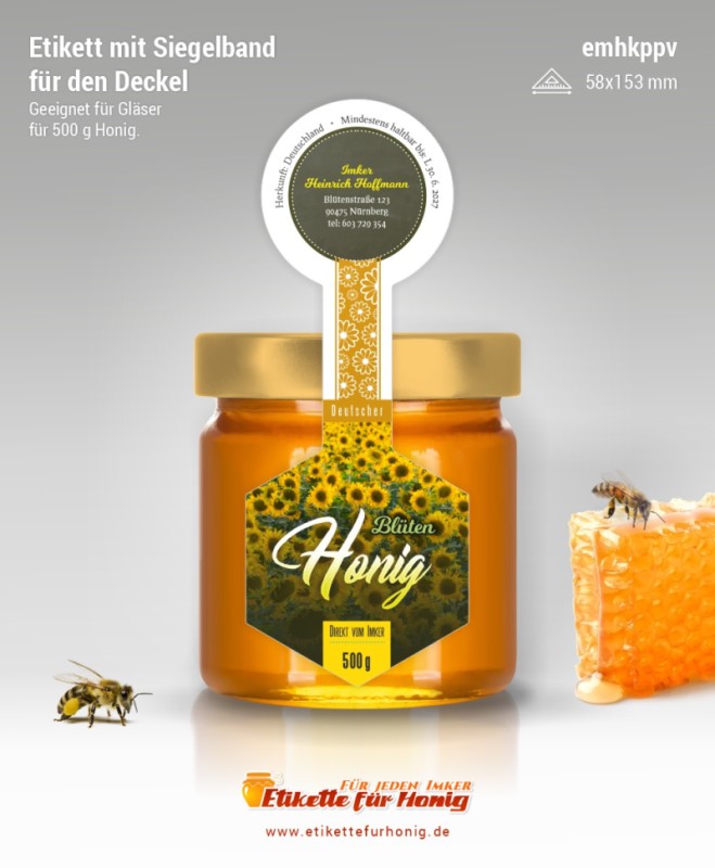 Startseite > Honigetiketten 58x153mm und 45x124mm, mit Siegelband > Honigetiketten 58x153mm, mit Siegelband (500g)