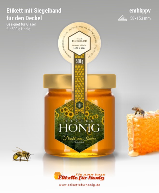 Startseite > Honigetiketten 58x153mm und 45x124mm, mit Siegelband > Honigetiketten 58x153mm, mit Siegelband (500g)