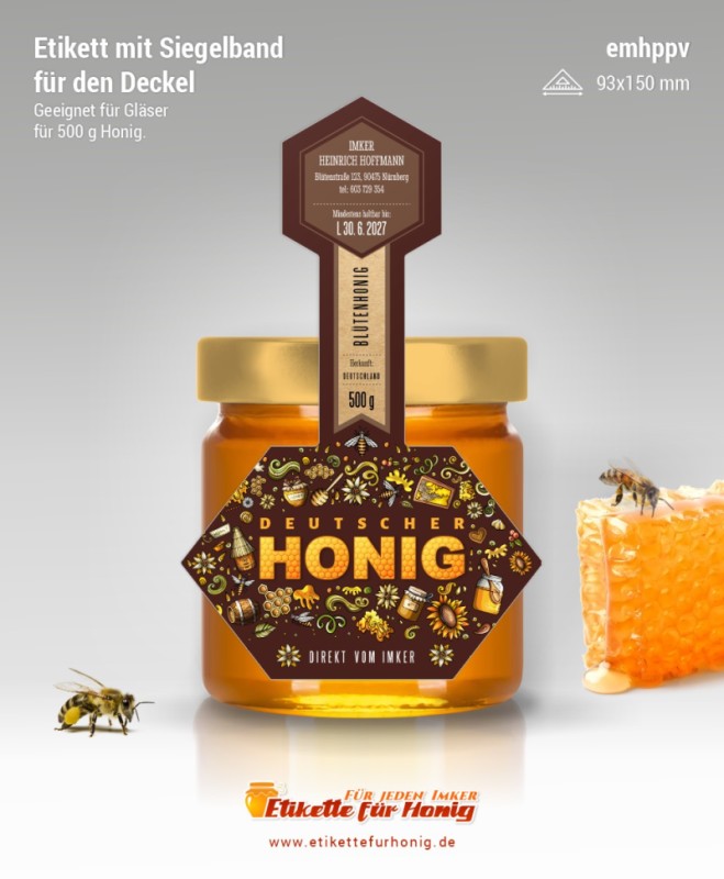 Startseite > Honigetiketten 93x150mm und 74x120mm, mit Siegelband > Honigetiketten 93x150mm, mit Siegelband (500g)
