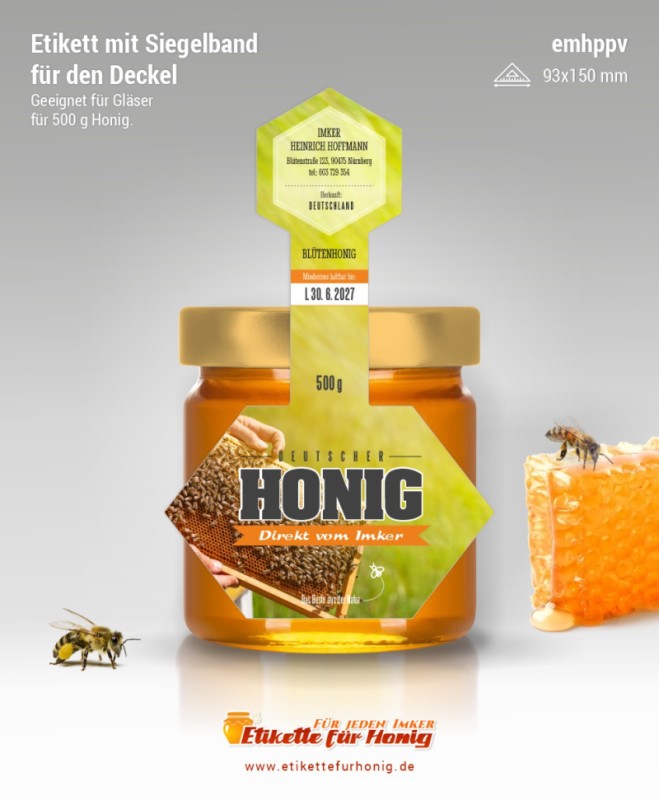 Startseite > Honigetiketten 93x150mm und 74x120mm, mit Siegelband > Honigetiketten 93x150mm, mit Siegelband (500g)