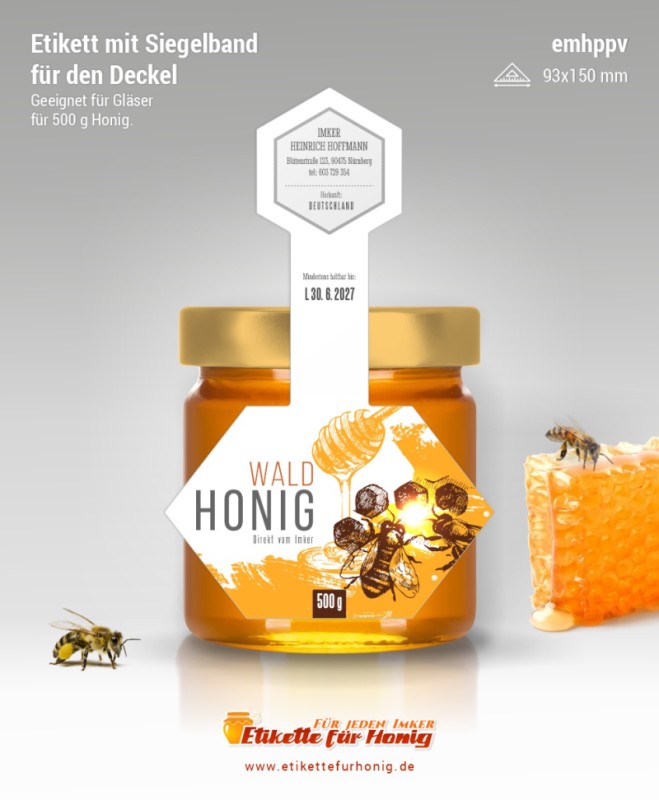 Startseite > Honigetiketten 93x150mm und 74x120mm, mit Siegelband > Honigetiketten 93x150mm, mit Siegelband (500g)