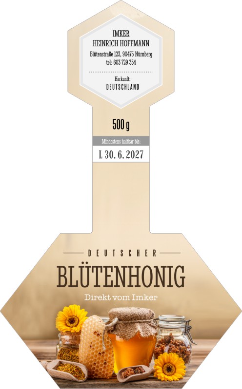 Wählen Sie die Honigsorte oder schreiben Sie Ihre eigene.Geben Sie Ihre Bezeichnung der Honigsorte ein.„Auf dem Etikett wird die ausgewählte Honigsorte angegeben.„Auf dem Etikett wird die ausgewählte Honigsorte angegeben.„Auf dem Etikett wird die ausgewählte Honigsorte angegeben.„Auf dem Etikett wird die ausgewählte Honigsorte angegeben.„Auf dem Etikett wird die ausgewählte Honigsorte angegeben.„Auf dem Etikett wird die ausgewählte Honigsorte angegeben.„Auf dem Etikett wird die ausgewählte Honigsorte angegeben.„Auf dem Etikett wird die ausgewählte Honigsorte angegeben.„Auf dem Etikett wird die ausgewählte Honigsorte angegeben.„Auf dem Etikett wird die ausgewählte Honigsorte angegeben.„Auf dem Etikett wird die ausgewählte Honigsorte angegeben.„Es wird keine Honigsorte angegeben. Es bleibt nur die Bezeichnung HONIG.