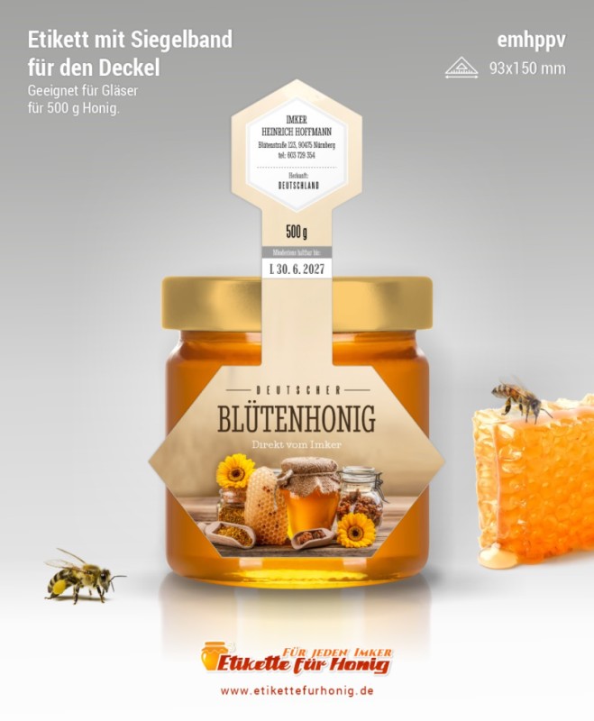 Startseite > Honigetiketten 93x150mm und 74x120mm, mit Siegelband > Honigetiketten 93x150mm, mit Siegelband (500g)