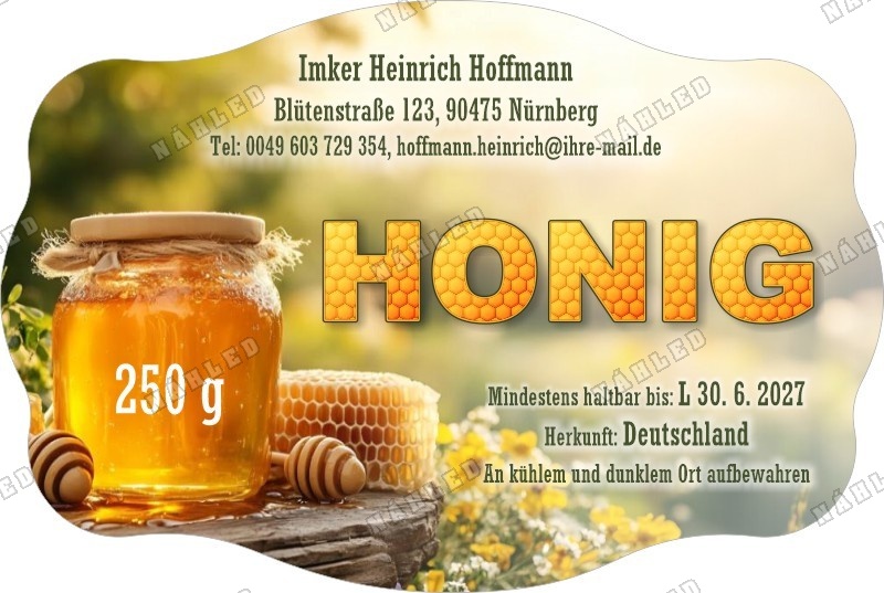 Wählen Sie die Honigsorte oder schreiben Sie Ihre eigene.Geben Sie Ihre Bezeichnung der Honigsorte ein.„Auf dem Etikett wird die ausgewählte Honigsorte angegeben.„Auf dem Etikett wird die ausgewählte Honigsorte angegeben.„Auf dem Etikett wird die ausgewählte Honigsorte angegeben.„Auf dem Etikett wird die ausgewählte Honigsorte angegeben.„Auf dem Etikett wird die ausgewählte Honigsorte angegeben.„Auf dem Etikett wird die ausgewählte Honigsorte angegeben.„Auf dem Etikett wird die ausgewählte Honigsorte angegeben.„Auf dem Etikett wird die ausgewählte Honigsorte angegeben.„Auf dem Etikett wird die ausgewählte Honigsorte angegeben.„Auf dem Etikett wird die ausgewählte Honigsorte angegeben.„Auf dem Etikett wird die ausgewählte Honigsorte angegeben.„Es wird keine Honigsorte angegeben. Es bleibt nur die Bezeichnung HONIG.