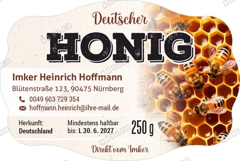 Wählen Sie die Honigsorte oder schreiben Sie Ihre eigene.Geben Sie Ihre Bezeichnung der Honigsorte ein.„Auf dem Etikett wird die ausgewählte Honigsorte angegeben.„Auf dem Etikett wird die ausgewählte Honigsorte angegeben.„Auf dem Etikett wird die ausgewählte Honigsorte angegeben.„Auf dem Etikett wird die ausgewählte Honigsorte angegeben.„Auf dem Etikett wird die ausgewählte Honigsorte angegeben.„Auf dem Etikett wird die ausgewählte Honigsorte angegeben.„Auf dem Etikett wird die ausgewählte Honigsorte angegeben.„Auf dem Etikett wird die ausgewählte Honigsorte angegeben.„Auf dem Etikett wird die ausgewählte Honigsorte angegeben.„Auf dem Etikett wird die ausgewählte Honigsorte angegeben.„Auf dem Etikett wird die ausgewählte Honigsorte angegeben.„Es wird keine Honigsorte angegeben. Es bleibt nur die Bezeichnung HONIG.
