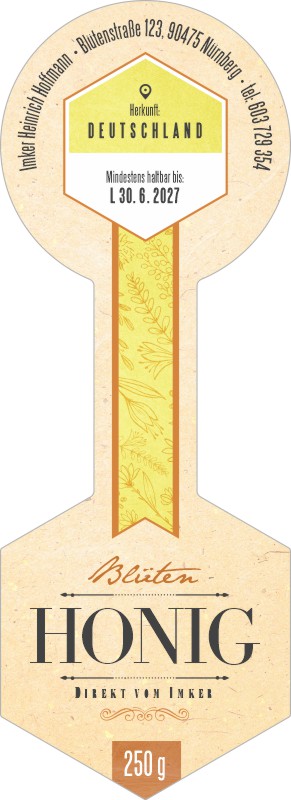 Wählen Sie die Honigsorte oder schreiben Sie Ihre eigene.Geben Sie Ihre Bezeichnung der Honigsorte ein.„Auf dem Etikett wird die ausgewählte Honigsorte angegeben.„Auf dem Etikett wird die ausgewählte Honigsorte angegeben.„Auf dem Etikett wird die ausgewählte Honigsorte angegeben.„Auf dem Etikett wird die ausgewählte Honigsorte angegeben.„Auf dem Etikett wird die ausgewählte Honigsorte angegeben.„Auf dem Etikett wird die ausgewählte Honigsorte angegeben.„Auf dem Etikett wird die ausgewählte Honigsorte angegeben.„Auf dem Etikett wird die ausgewählte Honigsorte angegeben.„Auf dem Etikett wird die ausgewählte Honigsorte angegeben.„Auf dem Etikett wird die ausgewählte Honigsorte angegeben.„Auf dem Etikett wird die ausgewählte Honigsorte angegeben.„Es wird keine Honigsorte angegeben. Es bleibt nur die Bezeichnung HONIG.