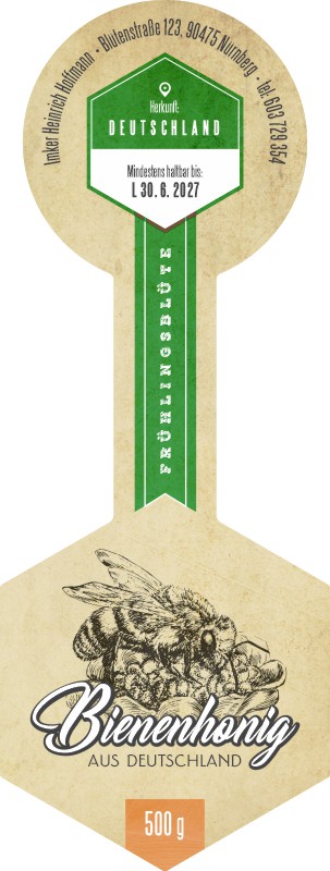 Wählen Sie die Honigsorte oder schreiben Sie Ihre eigene.Geben Sie Ihre Bezeichnung der Honigsorte ein.„Auf dem Etikett wird die ausgewählte Honigsorte angegeben.„Auf dem Etikett wird die ausgewählte Honigsorte angegeben.„Auf dem Etikett wird die ausgewählte Honigsorte angegeben.„Auf dem Etikett wird die ausgewählte Honigsorte angegeben.„Auf dem Etikett wird die ausgewählte Honigsorte angegeben.„Auf dem Etikett wird die ausgewählte Honigsorte angegeben.„Auf dem Etikett wird die ausgewählte Honigsorte angegeben.„Auf dem Etikett wird die ausgewählte Honigsorte angegeben.„Auf dem Etikett wird die ausgewählte Honigsorte angegeben.„Auf dem Etikett wird die ausgewählte Honigsorte angegeben.„Auf dem Etikett wird die ausgewählte Honigsorte angegeben.„Es wird keine Honigsorte angegeben. Es bleibt nur die Bezeichnung HONIG.