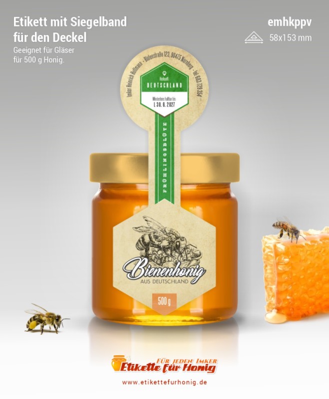 Startseite > Honigetiketten 58x153mm und 45x124mm, mit Siegelband > Honigetiketten 58x153mm, mit Siegelband (500g)