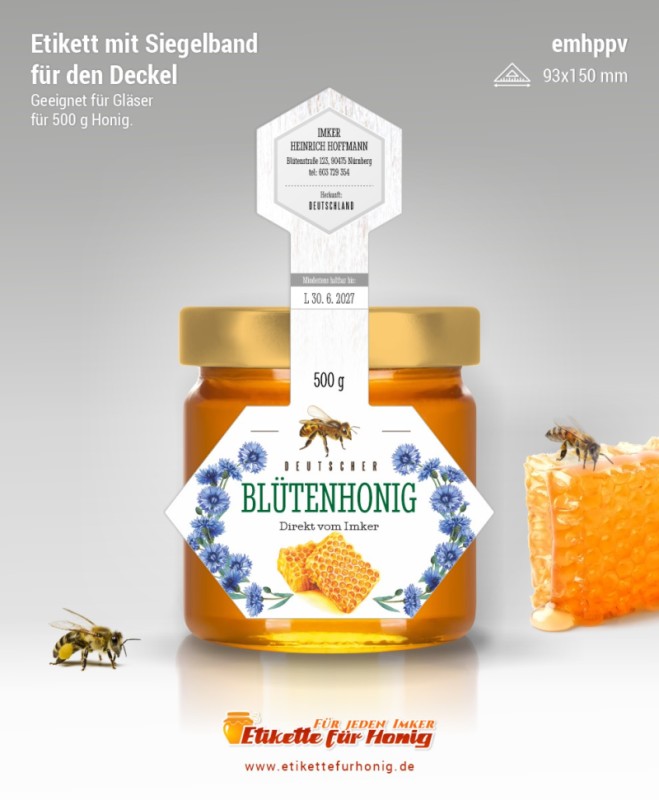 Startseite > Honigetiketten 93x150mm und 74x120mm, mit Siegelband > Honigetiketten 93x150mm, mit Siegelband (500g)