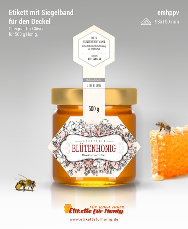 Startseite > Honigetiketten 93x150mm und 74x120mm, mit Siegelband > Honigetiketten 93x150mm, mit Siegelband (500g)