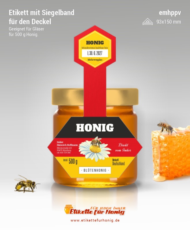 Startseite > Honigetiketten 93x150mm und 74x120mm, mit Siegelband > Honigetiketten 93x150mm, mit Siegelband (500g)