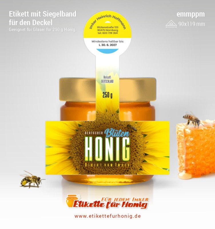 Startseite > Honigetiketten 114x146mm und 90x119mm, mit Siegelband > Honigetiketten 90x119mm, mit Siegelband (250g)