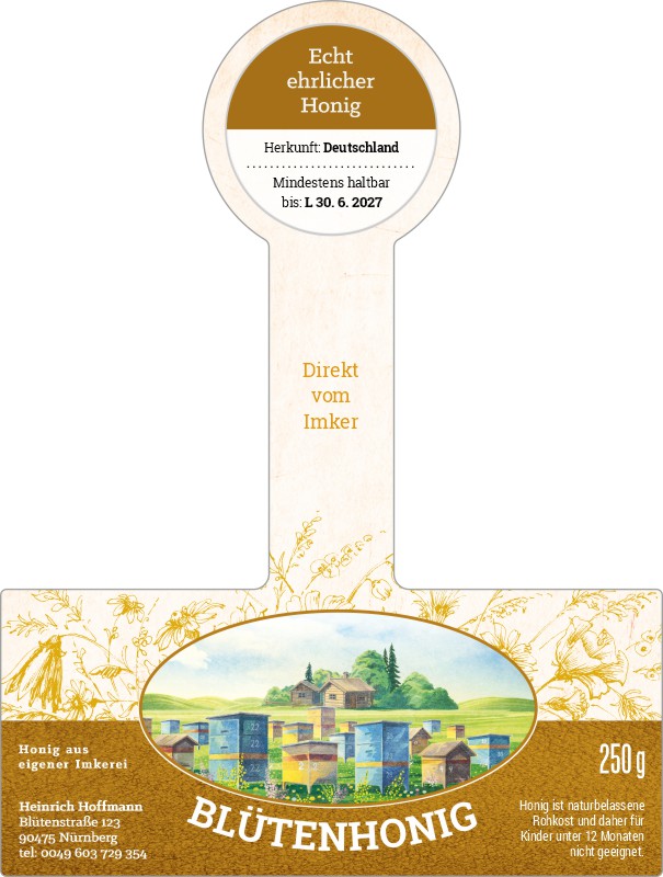 Wählen Sie die Honigsorte oder schreiben Sie Ihre eigene.Geben Sie Ihre Bezeichnung der Honigsorte ein.„Auf dem Etikett wird die ausgewählte Honigsorte angegeben.„Auf dem Etikett wird die ausgewählte Honigsorte angegeben.„Auf dem Etikett wird die ausgewählte Honigsorte angegeben.„Auf dem Etikett wird die ausgewählte Honigsorte angegeben.„Auf dem Etikett wird die ausgewählte Honigsorte angegeben.„Auf dem Etikett wird die ausgewählte Honigsorte angegeben.„Auf dem Etikett wird die ausgewählte Honigsorte angegeben.„Auf dem Etikett wird die ausgewählte Honigsorte angegeben.„Auf dem Etikett wird die ausgewählte Honigsorte angegeben.„Auf dem Etikett wird die ausgewählte Honigsorte angegeben.„Auf dem Etikett wird die ausgewählte Honigsorte angegeben.„Es wird keine Honigsorte angegeben. Es bleibt nur die Bezeichnung HONIG.