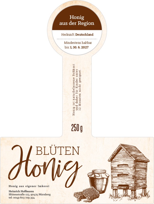 Wählen Sie die Honigsorte oder schreiben Sie Ihre eigene.Geben Sie Ihre Bezeichnung der Honigsorte ein.„Auf dem Etikett wird die ausgewählte Honigsorte angegeben.„Auf dem Etikett wird die ausgewählte Honigsorte angegeben.„Auf dem Etikett wird die ausgewählte Honigsorte angegeben.„Auf dem Etikett wird die ausgewählte Honigsorte angegeben.„Auf dem Etikett wird die ausgewählte Honigsorte angegeben.„Auf dem Etikett wird die ausgewählte Honigsorte angegeben.„Auf dem Etikett wird die ausgewählte Honigsorte angegeben.„Auf dem Etikett wird die ausgewählte Honigsorte angegeben.„Auf dem Etikett wird die ausgewählte Honigsorte angegeben.„Auf dem Etikett wird die ausgewählte Honigsorte angegeben.„Auf dem Etikett wird die ausgewählte Honigsorte angegeben.„Es wird keine Honigsorte angegeben. Es bleibt nur die Bezeichnung HONIG.
