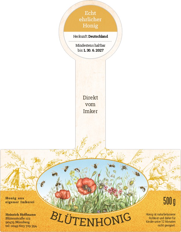 Wählen Sie die Honigsorte oder schreiben Sie Ihre eigene.Geben Sie Ihre Bezeichnung der Honigsorte ein.„Auf dem Etikett wird die ausgewählte Honigsorte angegeben.„Auf dem Etikett wird die ausgewählte Honigsorte angegeben.„Auf dem Etikett wird die ausgewählte Honigsorte angegeben.„Auf dem Etikett wird die ausgewählte Honigsorte angegeben.„Auf dem Etikett wird die ausgewählte Honigsorte angegeben.„Auf dem Etikett wird die ausgewählte Honigsorte angegeben.„Auf dem Etikett wird die ausgewählte Honigsorte angegeben.„Auf dem Etikett wird die ausgewählte Honigsorte angegeben.„Auf dem Etikett wird die ausgewählte Honigsorte angegeben.„Auf dem Etikett wird die ausgewählte Honigsorte angegeben.„Auf dem Etikett wird die ausgewählte Honigsorte angegeben.„Es wird keine Honigsorte angegeben. Es bleibt nur die Bezeichnung HONIG.