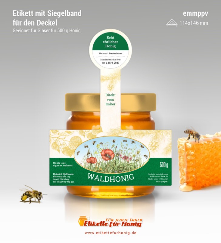 Startseite > Honigetiketten 114x146mm und 90x119mm, mit Siegelband > Honigetiketten 114x146mm, mit Siegelband (500g)